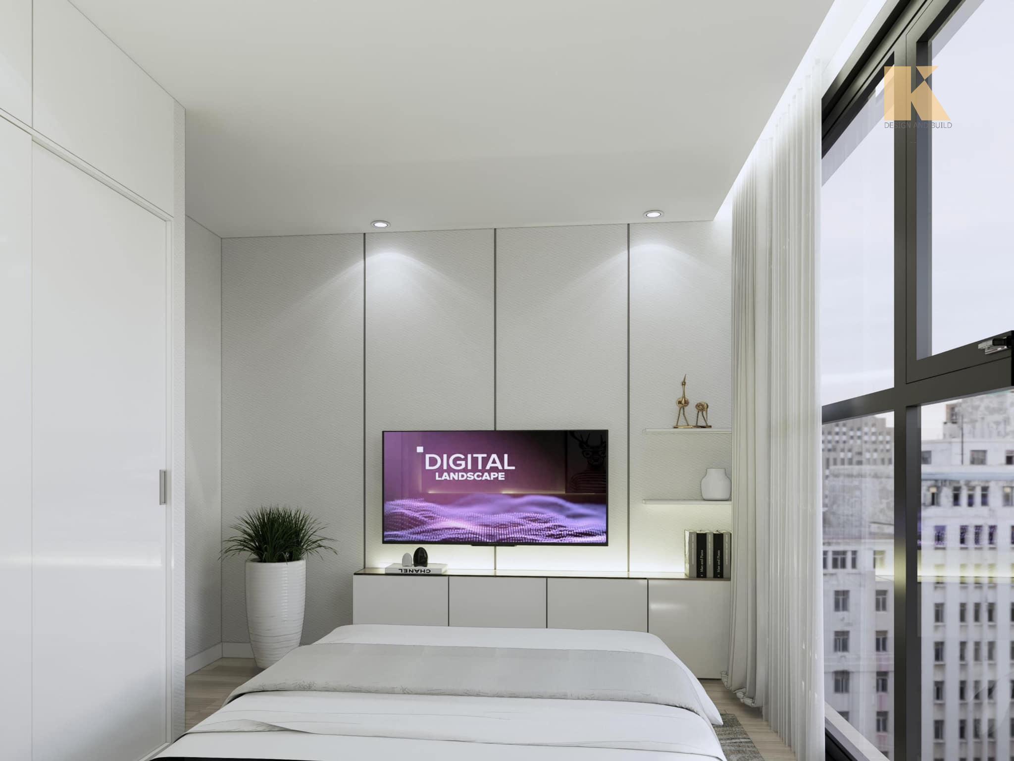 Phân Bố Không Gian Hợp Lý Căn hộ penthouse thường có diện tích lớn, vì vậy việc bố trí không gian hợp lý rất quan trọng: Phòng khách: Là trung tâm của căn hộ, cần thiết kế rộng rãi, nội thất cao cấp và có điểm nhấn như đèn chùm, sofa lớn hoặc tranh nghệ thuật. Phòng ngủ: Tạo không gian thư giãn với tone màu nhẹ nhàng, sử dụng rèm cửa và ánh sáng ấm áp. Bếp và phòng ăn: Thường thiết kế mở, tích hợp với đảo bếp để tăng thêm sự tiện lợi và hiện đại. Khu vực ban công :Có thể được bố trí thành khu vườn nhỏ hoặc góc thư giãn với bàn ghế ngoài trời..
